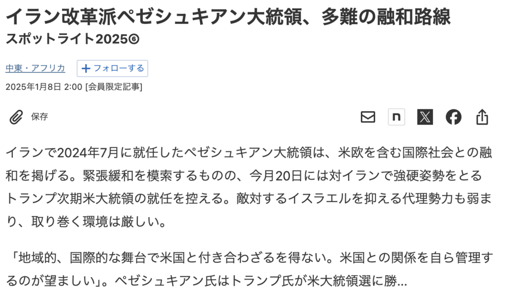 これはイランの大統領が「もうハマスとかイスラム原理主義とか疲れたんよ。欧米と仲良くして国民により良い暮らしを提供できるようにします。」ということです。