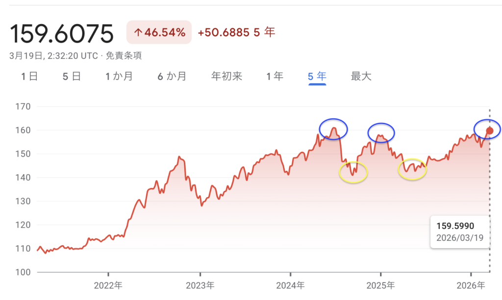 日米首脳会談次第ですが、今現在は160円を介入目安としていますが、これを一段上の場所、つまり170円とか180円にしてくる可能性はあるのでは?と想像しています。